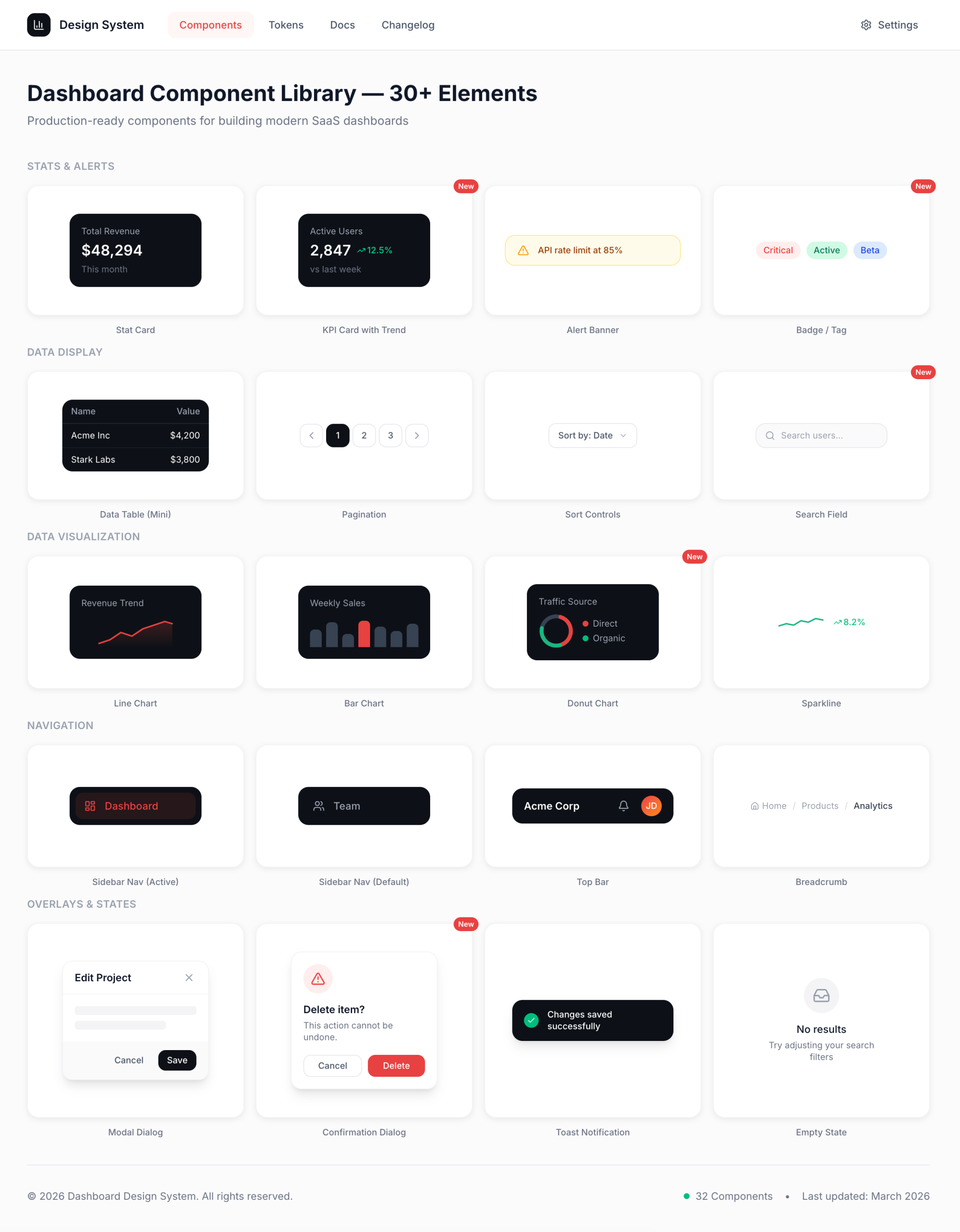 - AI-generated component library for consistent dashboard UI (tables, cards, modals, etc.)
