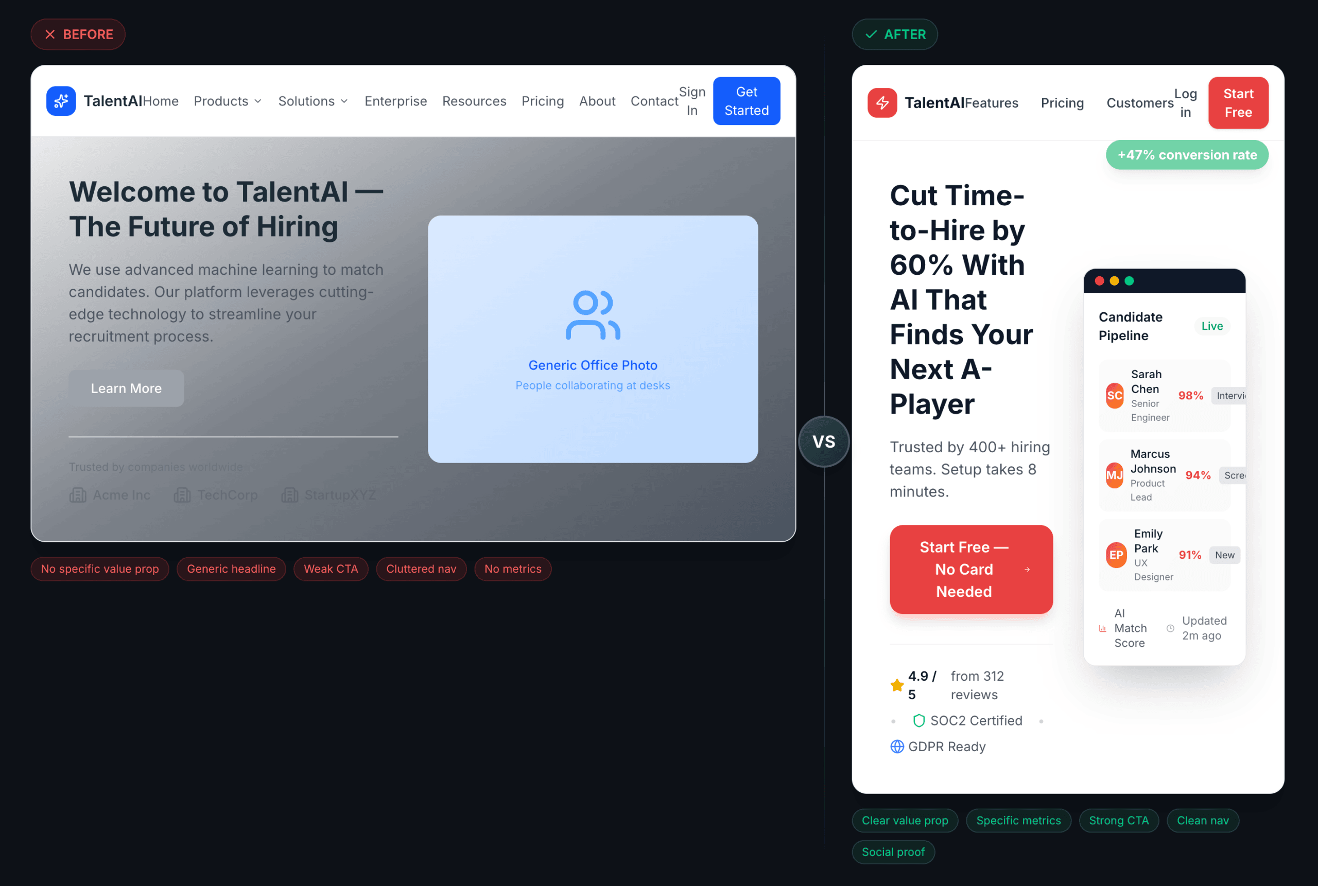 - Teams with traffic, but a landing page converting under 5–7%