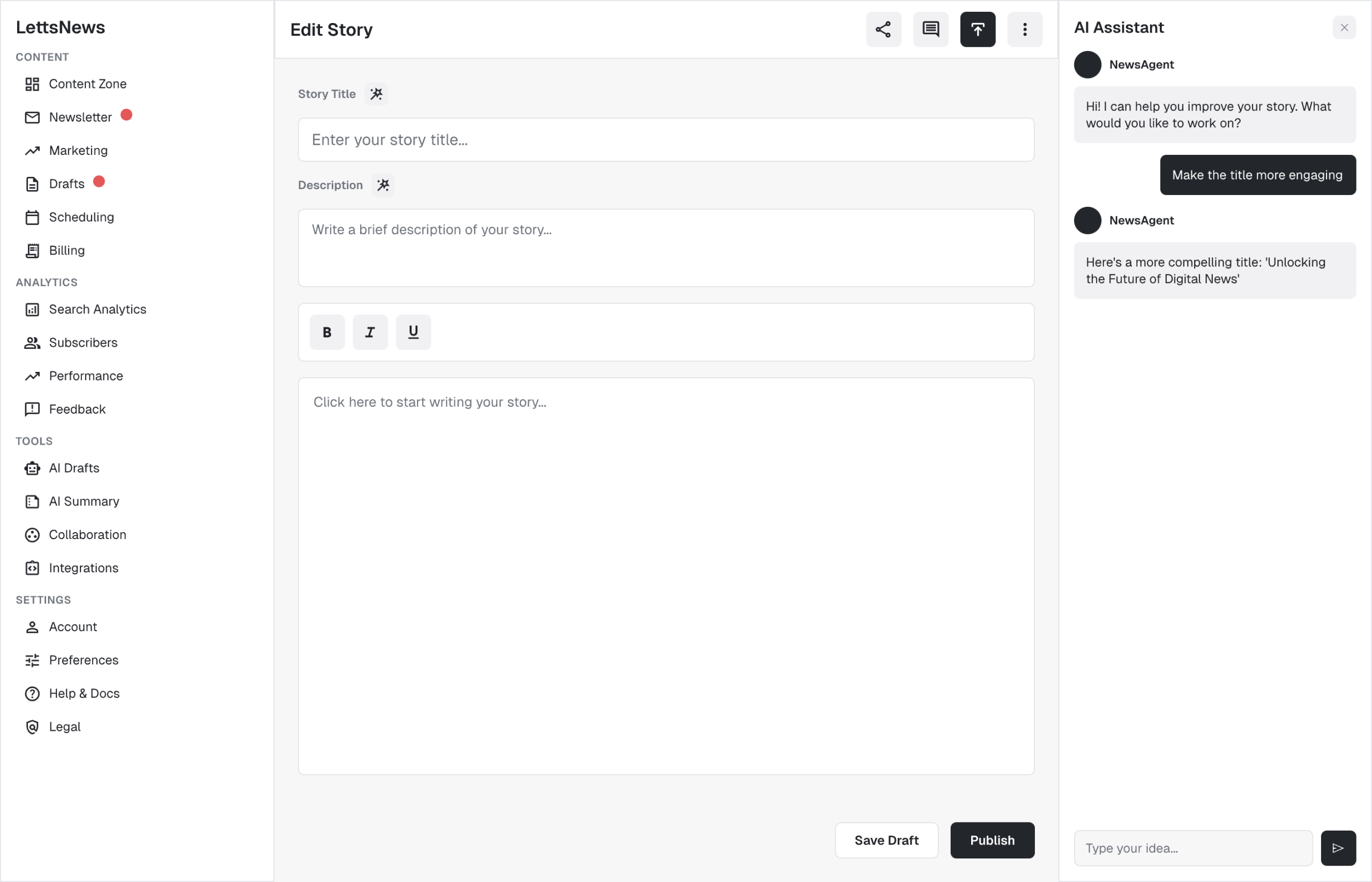 LettsNews: Designing Workflows Where AI Feels Like Craftsmanship – UX for AI-Powered Content Tools