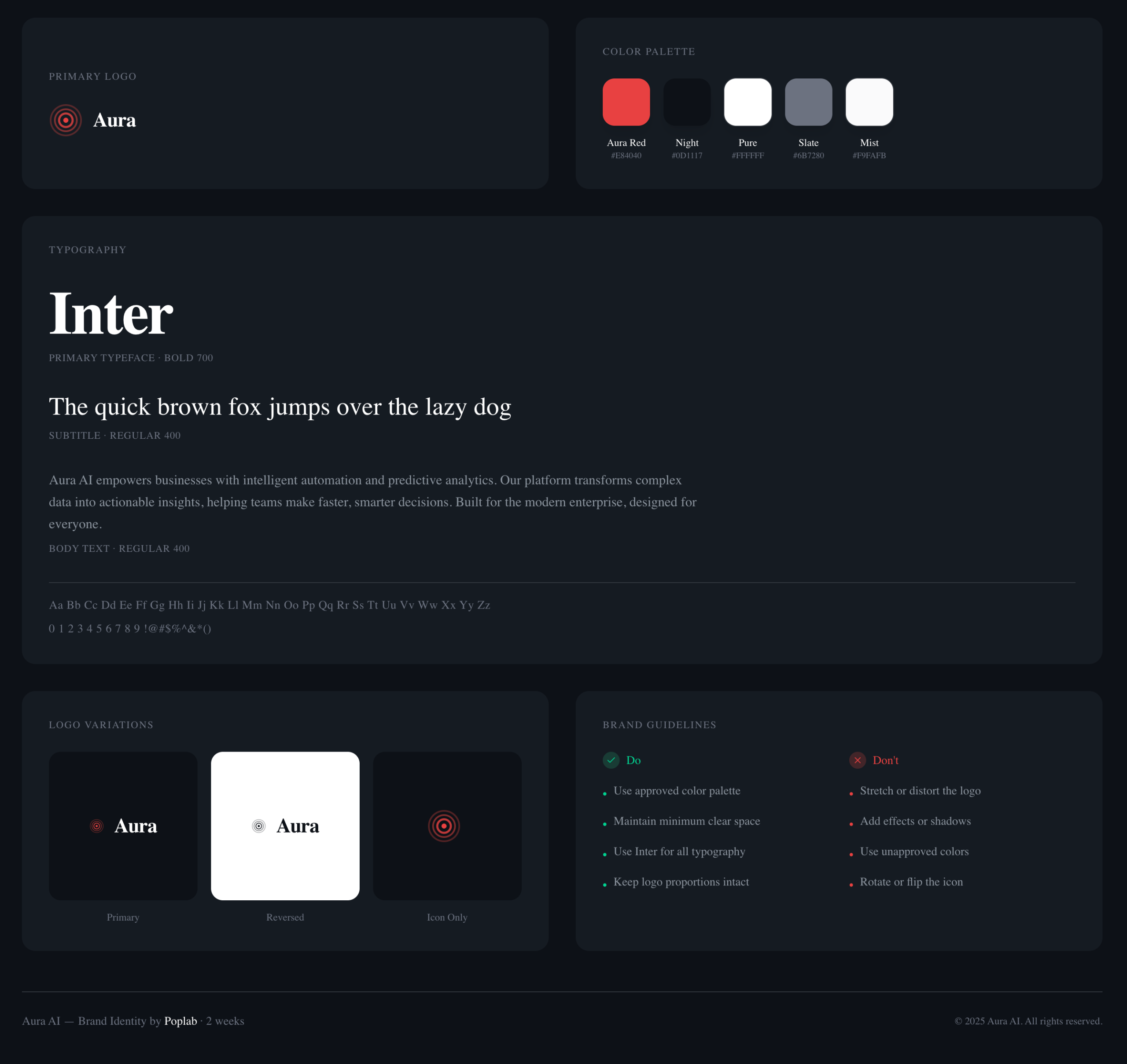 - 1‑page brand guidelines (usage rules, do’s/don’ts, examples)